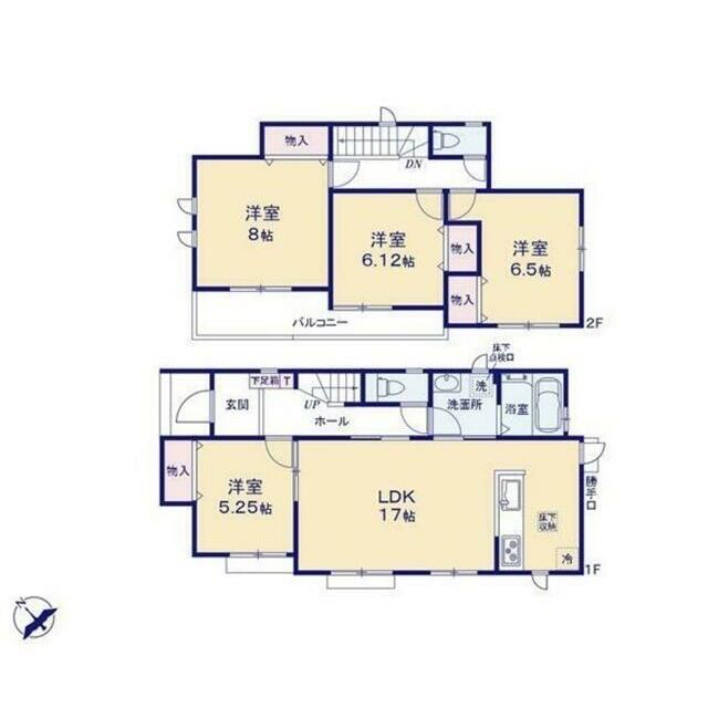 | 間取り(内訳) | 4LDK(1階:LDK17帖 1階:洋5.2帖 2階:洋8帖 2階:洋) | 建物面積 | 102.05㎡ |