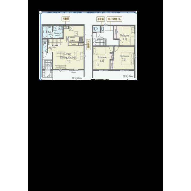 | 設備 | カウンターキッチン システムキッチン 床下収納 モニタ付インターホン ディンプルキー シャッター雨戸 複層ガラス 都市ガス 人感センサー付照明 火災警報器(報知機) トイレ2ヶ所 | ||