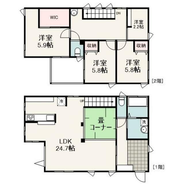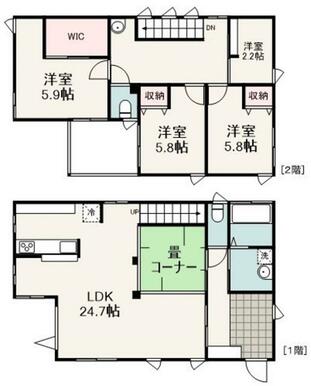 | 間取り(内訳) | 3SLDK(1室LDK24.7帖 1室洋5.9帖 2室洋5.8帖 1室そ) | 建物面積 | 109.82㎡ |