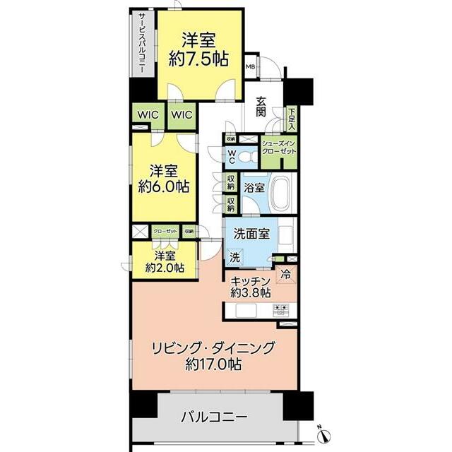 2SLDK(1室LDK17帖 1室洋7.5帖 1室洋6帖 1室S2帖) |