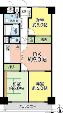 | 間取り(内訳) | 3DK(DK9帖 洋5帖 和6帖 洋6帖) | ||