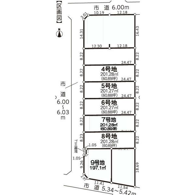 | 土地面積 | 実測 201.28㎡ | 坪数 | 60.88坪 | 坪単価 | 16.10万円 |
